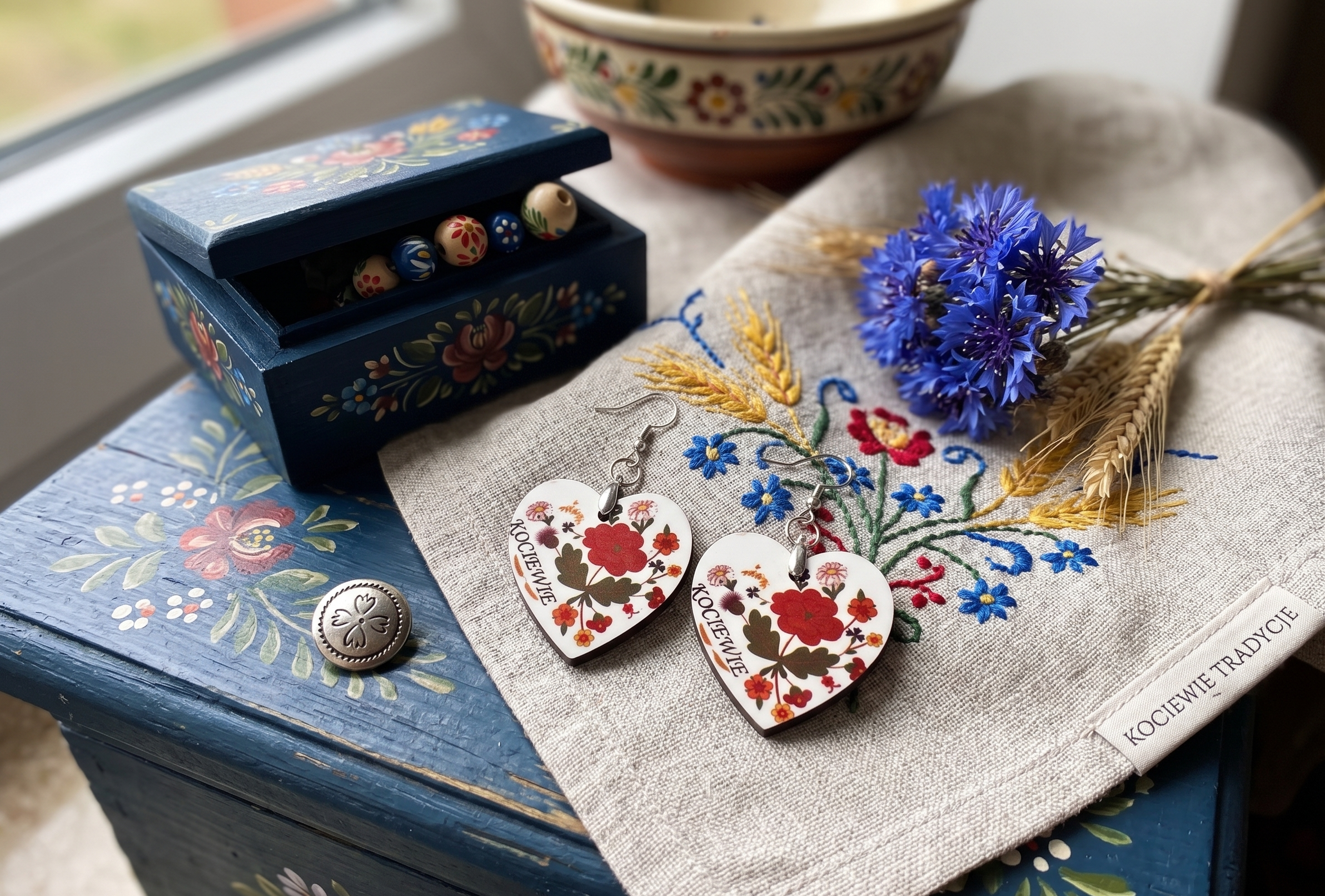 Kociewskie kolczyki w kształcie serca to drobny, ale wymowny detal – symbol tradycji, emocji i lokalnej tożsamości 💙