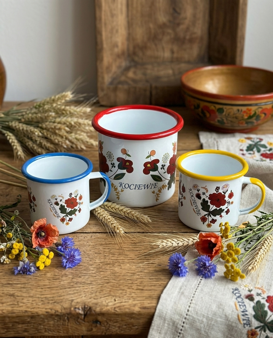 Każdy kubek to połączenie praktyczności z lokalną tradycją – mały codzienny rytuał z nutą Kociewia.