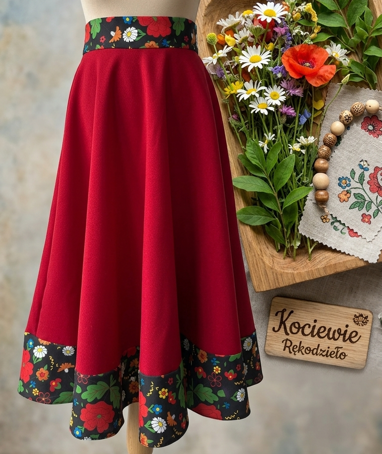 Spódnica kociewska falbankowa to harmonijne połączenie tradycji, kobiecej formy i regionalnej tożsamości – ponadczasowy element garderoby z duszą.